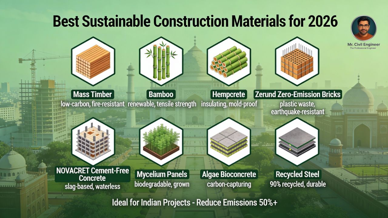 With these criteria in mind, let’s look at the top sustainable construction materials that are set to dominate 2026.