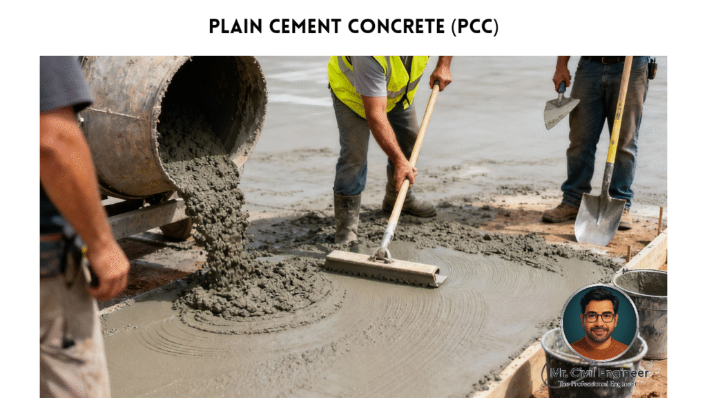 PCC is your go‑to choice when you need a strong, level, and durable base, but you are not relying on that layer to act as a main structural member. For example, below an isolated footing, a 75–100 mm thick PCC layer is often provided to create a clean, level platform and to keep the structural concrete safe from direct contact with soil and groundwater.