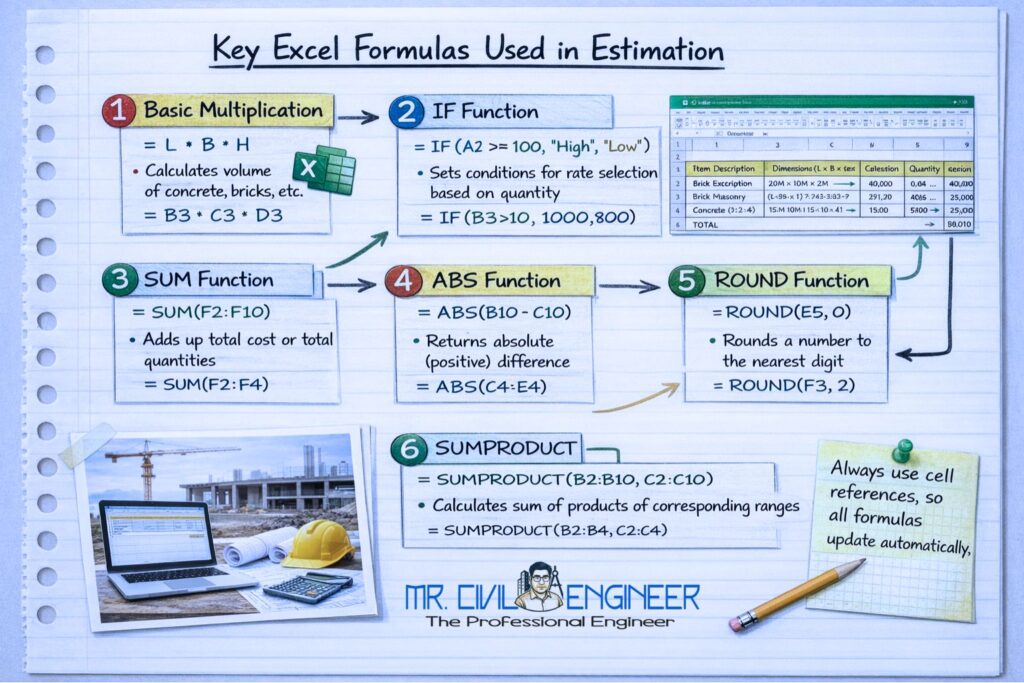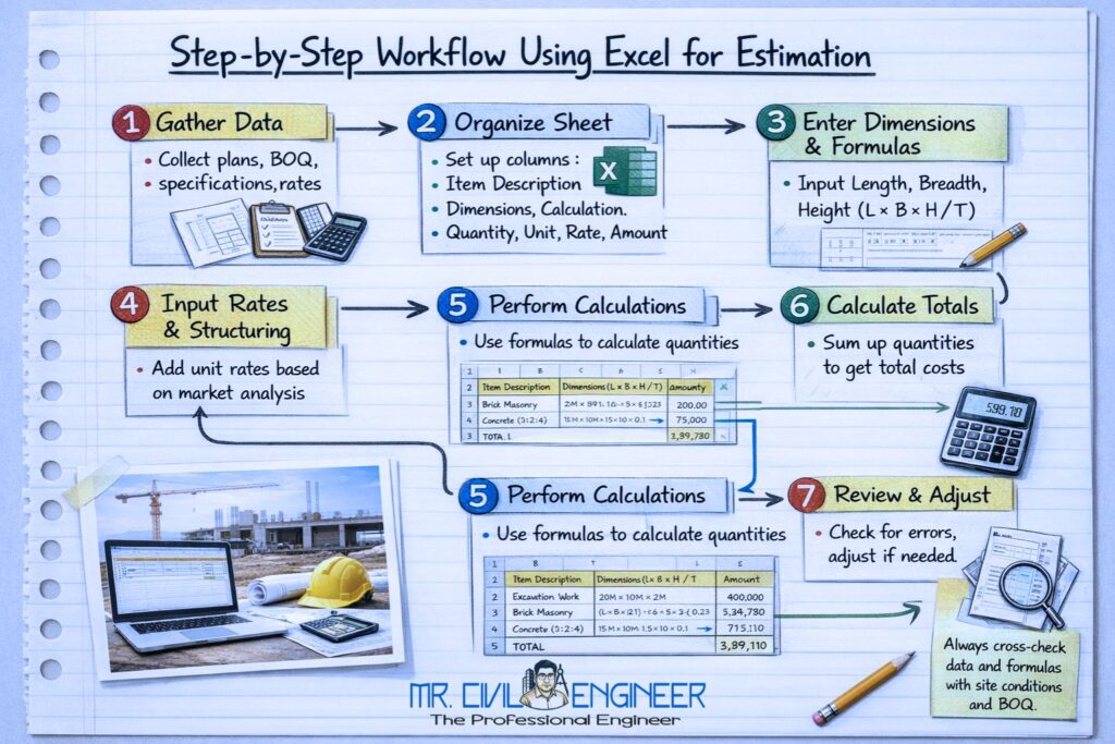This guide explains how an Excel sheet for civil engineering estimation works, what it should contain, and how it is used step-by-step in real construction projects.