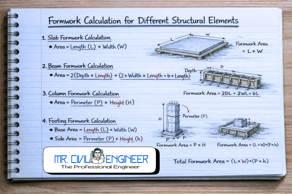 In RCC works, formwork cost can be 20–25% of total concrete cost, which makes its calculation extremely important.