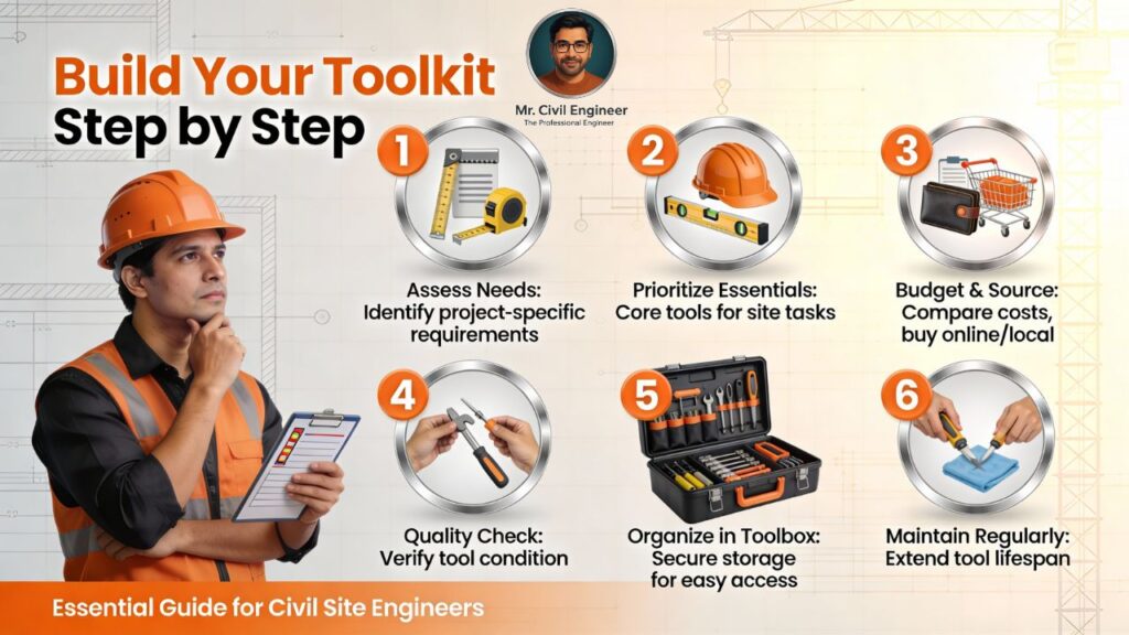 If you have ever reached a critical inspection and realized your tape is missing or your phone battery is at 5%, you already know this: on a construction site, the right tools can save your day—and your reputation. A smart site engineer does not rely only on the contractor’s kit; they build a personal toolkit that keeps them accurate, safe, and always ready.