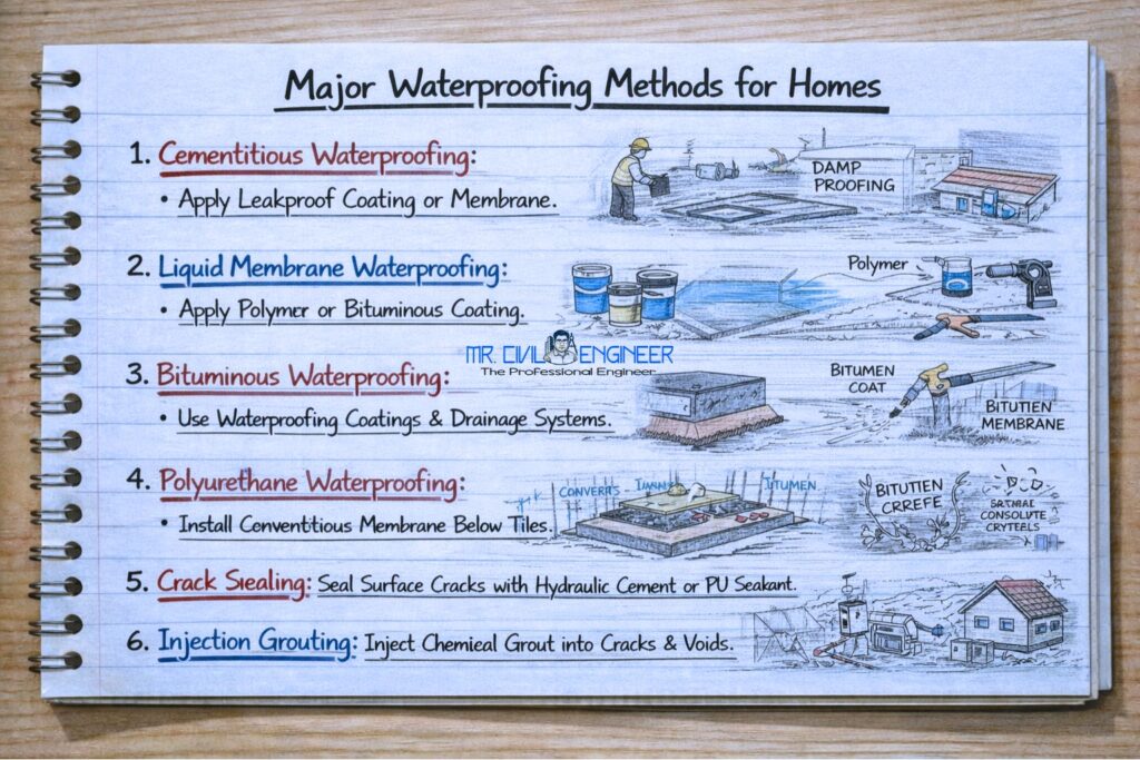 Major Waterproofing Methods for Homes